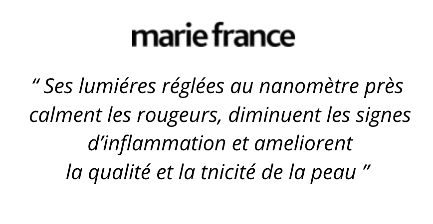 "Première utilisation de la technologie LED pour moi. Après 6 semaines, on ne peut que constater une réelle efficacité sur l'éclat, le grain de peau plus uniforme et un effet tenseur après chaque séance. C'est un vrai moment de bien-être."
